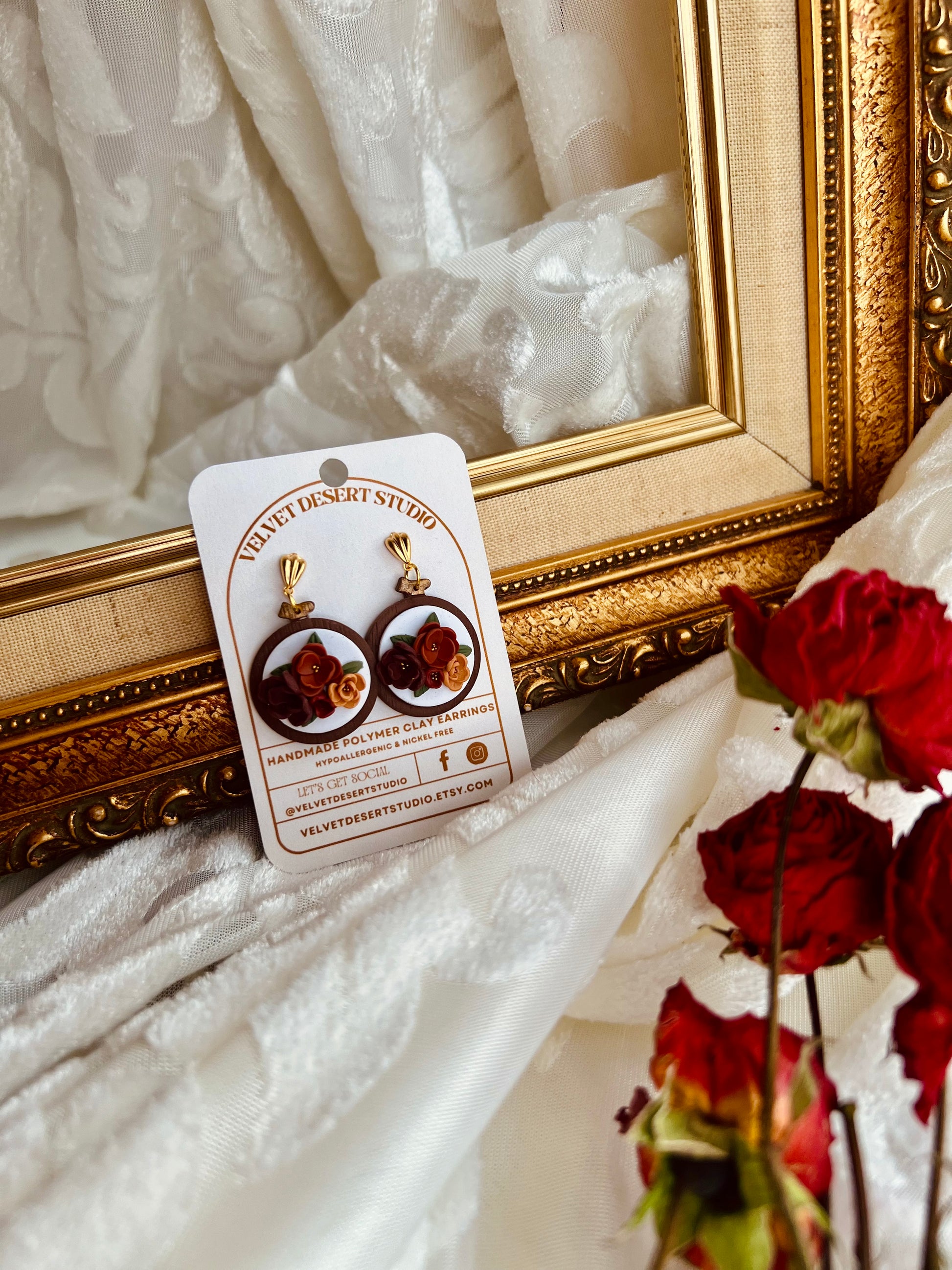 Fall Floral Embroidery Hoop Earrings